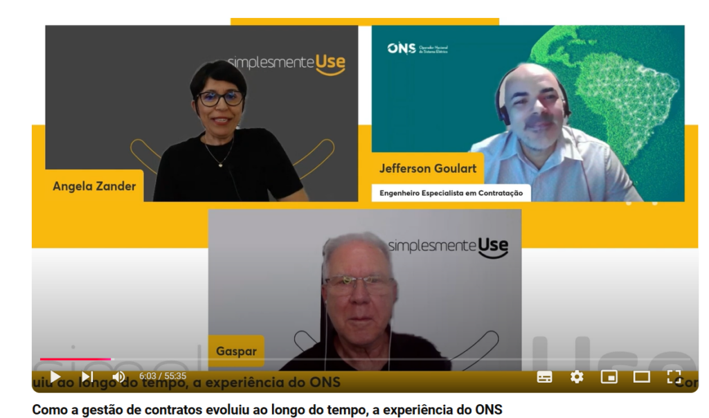 No webinar sobre gestão de contratos promovido pela simplesmenteUse em 23/10/24, Ângela Zander e Antonio Gaspar, cofundadores da empresa receberam o convidado Jeferson Goulart, Engenheiro Especialista em Administração Contratual do Operador Nacional do Sistema Elétrico (ONS) para discutir as etapas desta evolução.